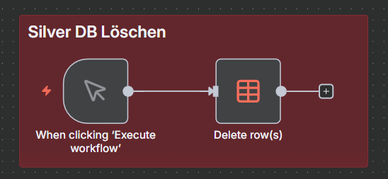 Ein manueller Trigger mit einer „Delete all rows“-Node dahinter, und mit einem Klick sind alle Daten wieder weg.